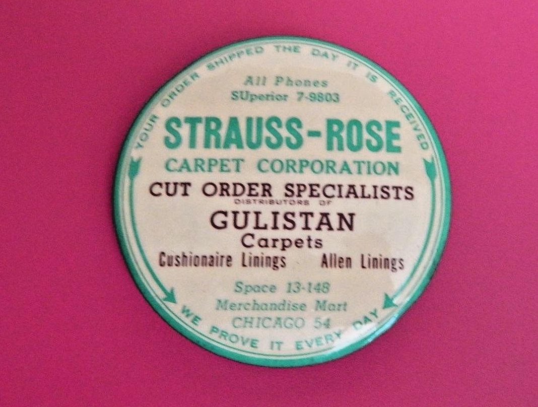 Title (ebay affiliate link): Very Nice Vintage Strauss-Rose Carpet Corporation Advertising Pocket Mirror
