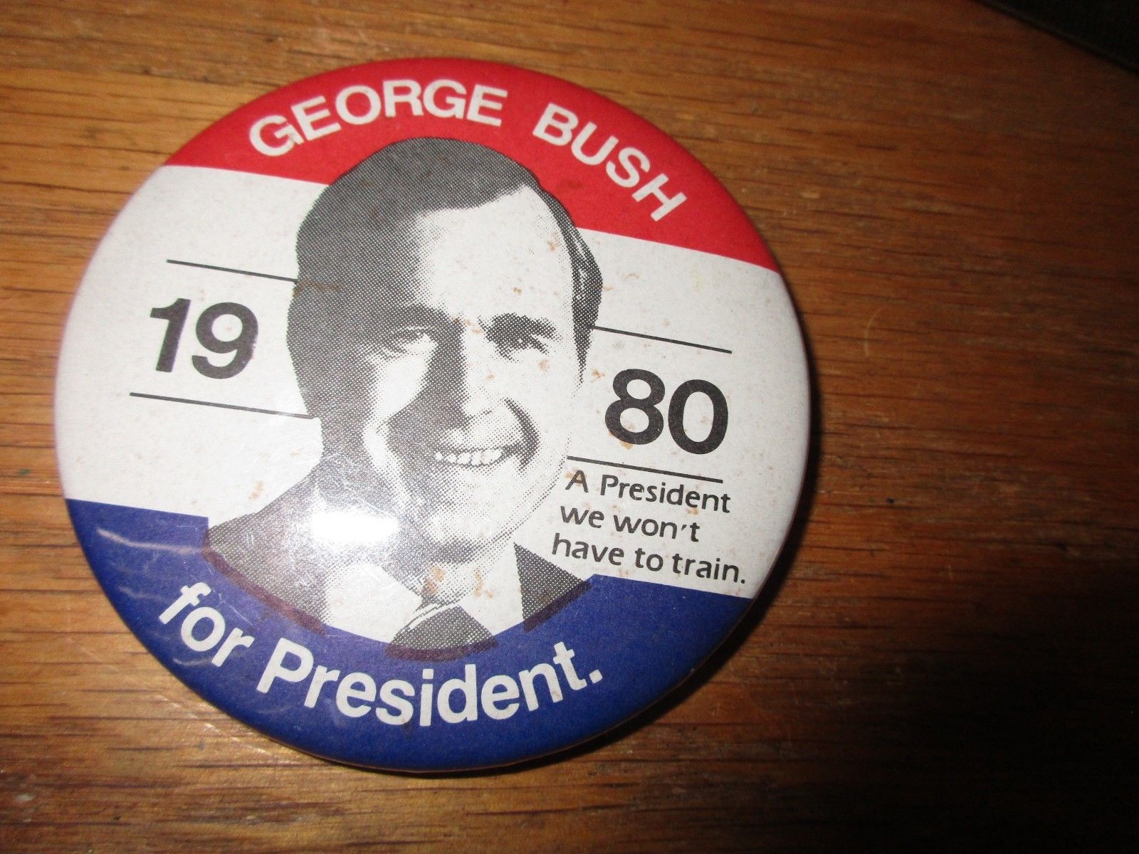 Title (ebay affiliate link): (George) Bush For President 1980 Campaign Pin button 3" We Won''t Have to Train