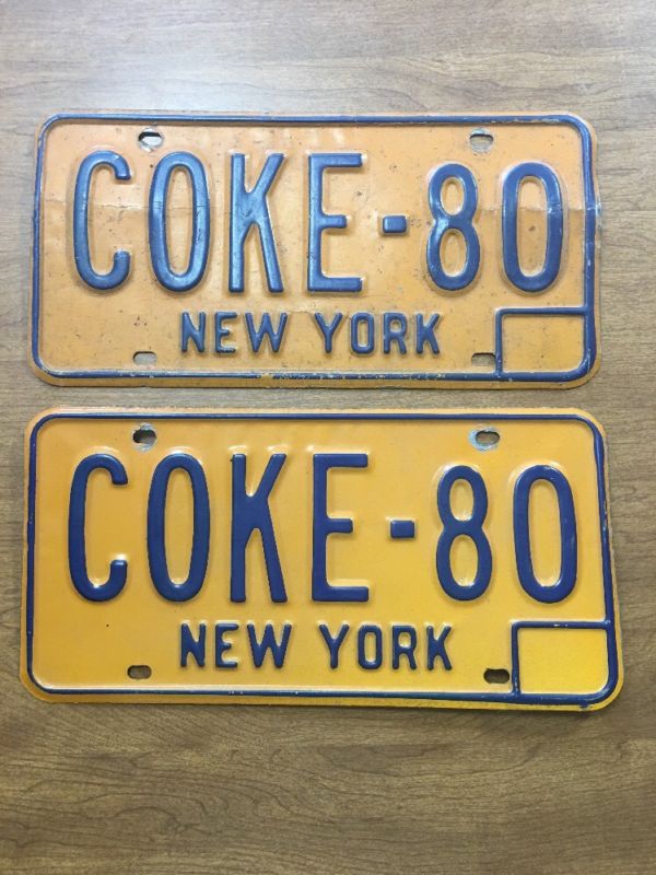 Coke 80 License Plates Pair New York NY Coca Cola Vintage Antique