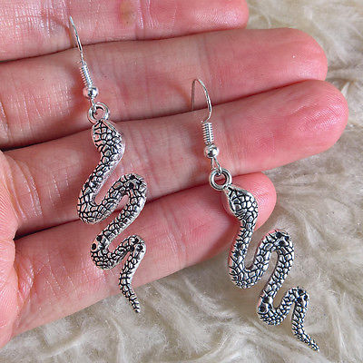 Title (ebay affiliate link): NEW Womens Antique-Silver-Black Metal Snake Chandelier Dangle Drop Hook Earrings
