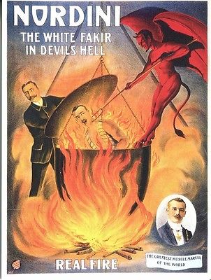 POSTCARD OF ADVERTISEMENT FOR NORDINI THE WHITE FAKIR IN DEVILS HELL ILLUSIONIST