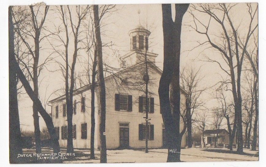 Title (ebay affiliate link): M.L. PHOTO~RPPC~1915~Fairview,IL~DUTCH REFORMED CHURCH~Fulton County, Illinois