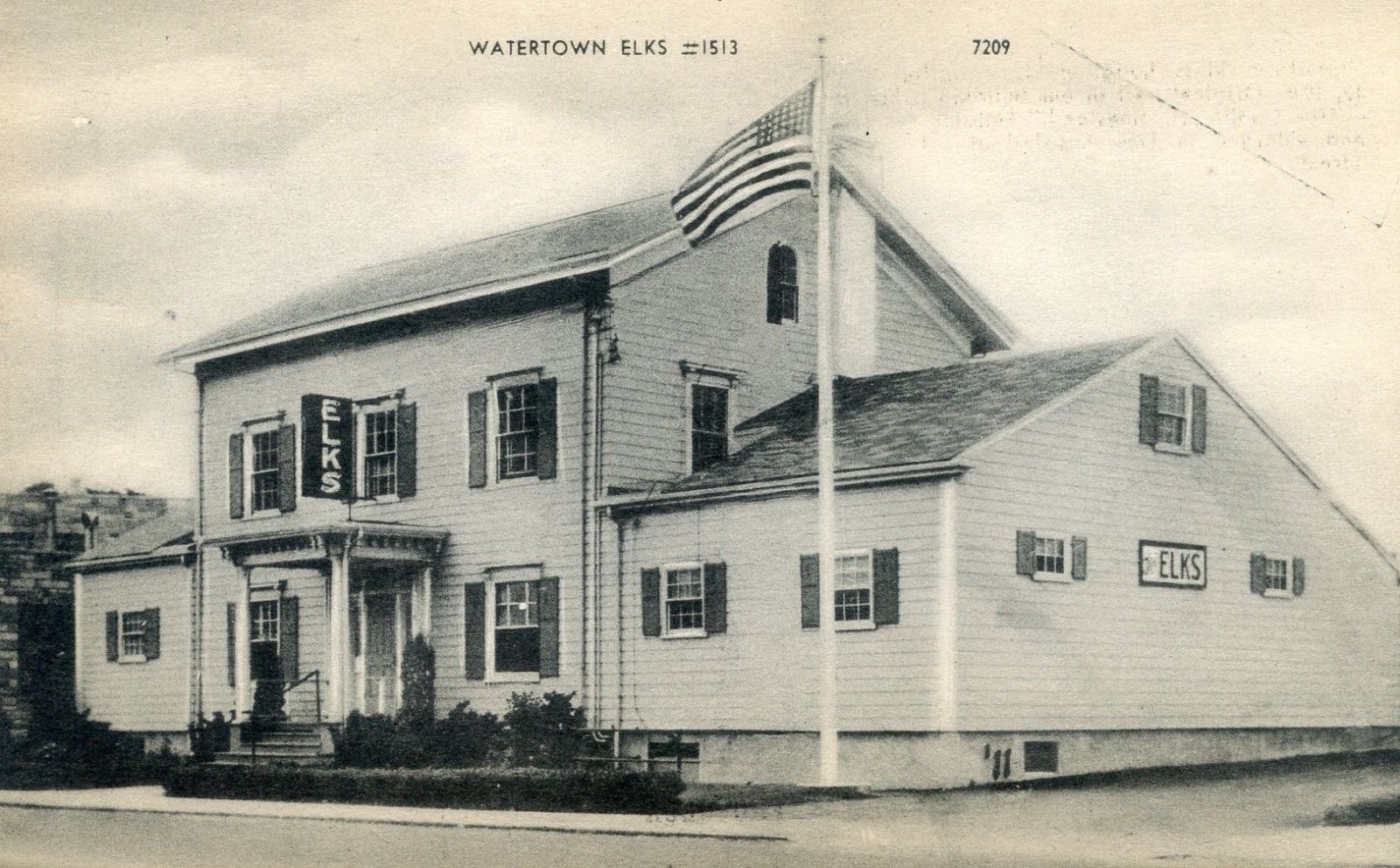 Title (ebay affiliate link): Watertown MA, vintage black & white postcard, Watertown Elks Bldg., card # 7209