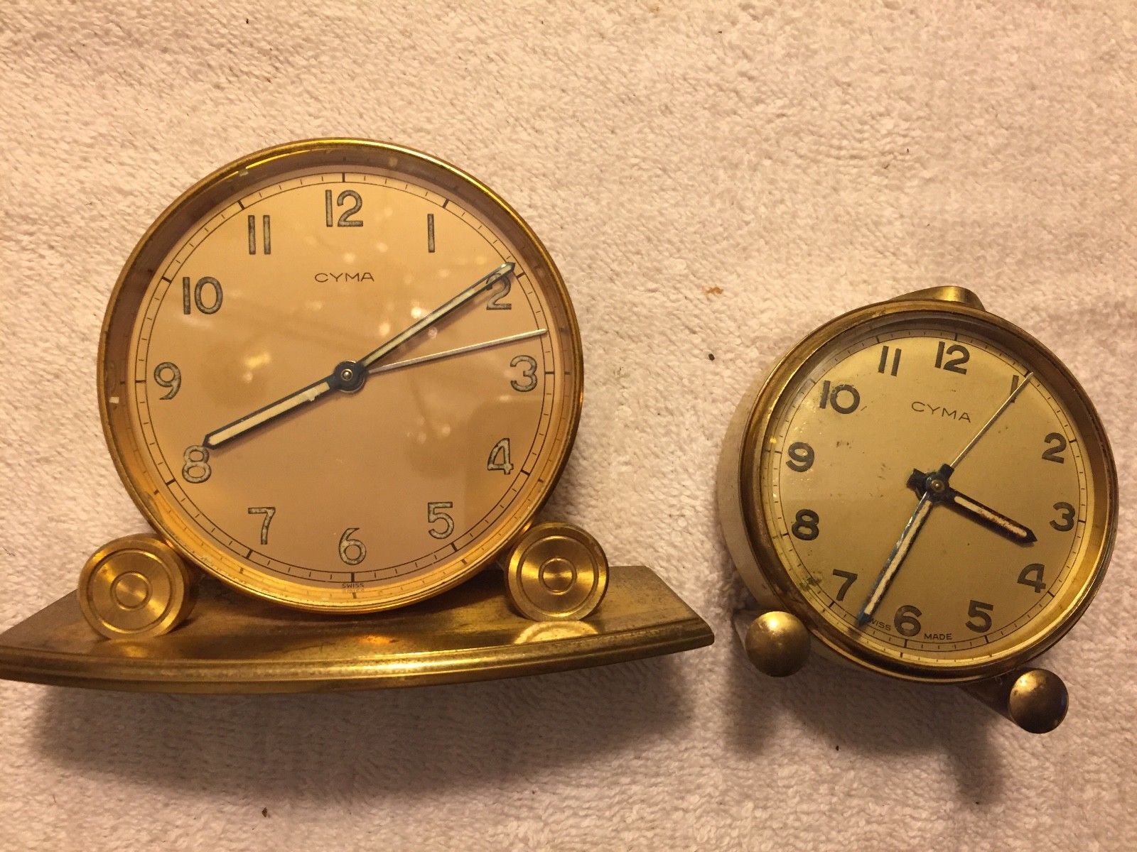Title (ebay affiliate link): Two 1930 - 1040 Antique CYMA Alarm Desk clock made in Swiss for part or repair