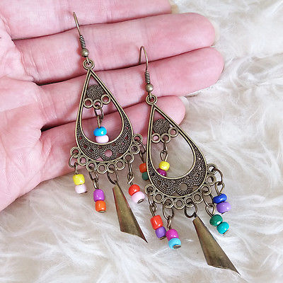 Title (ebay affiliate link): Vintage Womens Bohemian Antique-Brass-Color Multi Bead Dangle Drop Hook Earrings