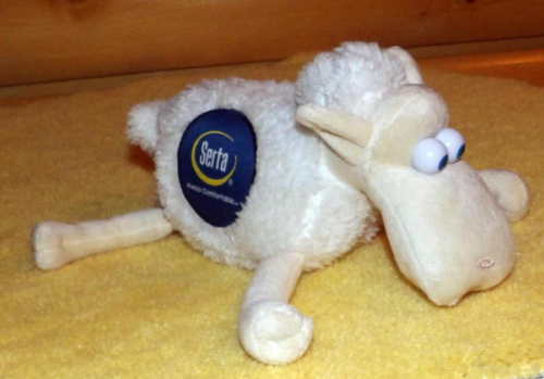 Title (ebay affiliate link): Serta Counting Sheep Blue-Eyes Plush New Style 9" Mascot #1 Always Comfortable