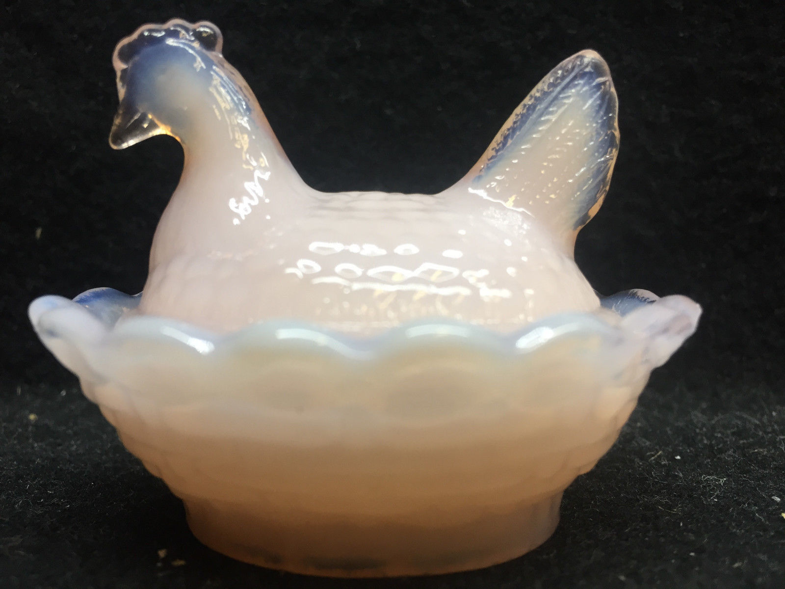 Title (ebay affiliate link): Pink milk glass salt celt hen chicken on nest basket dish / rooster crown tuscan