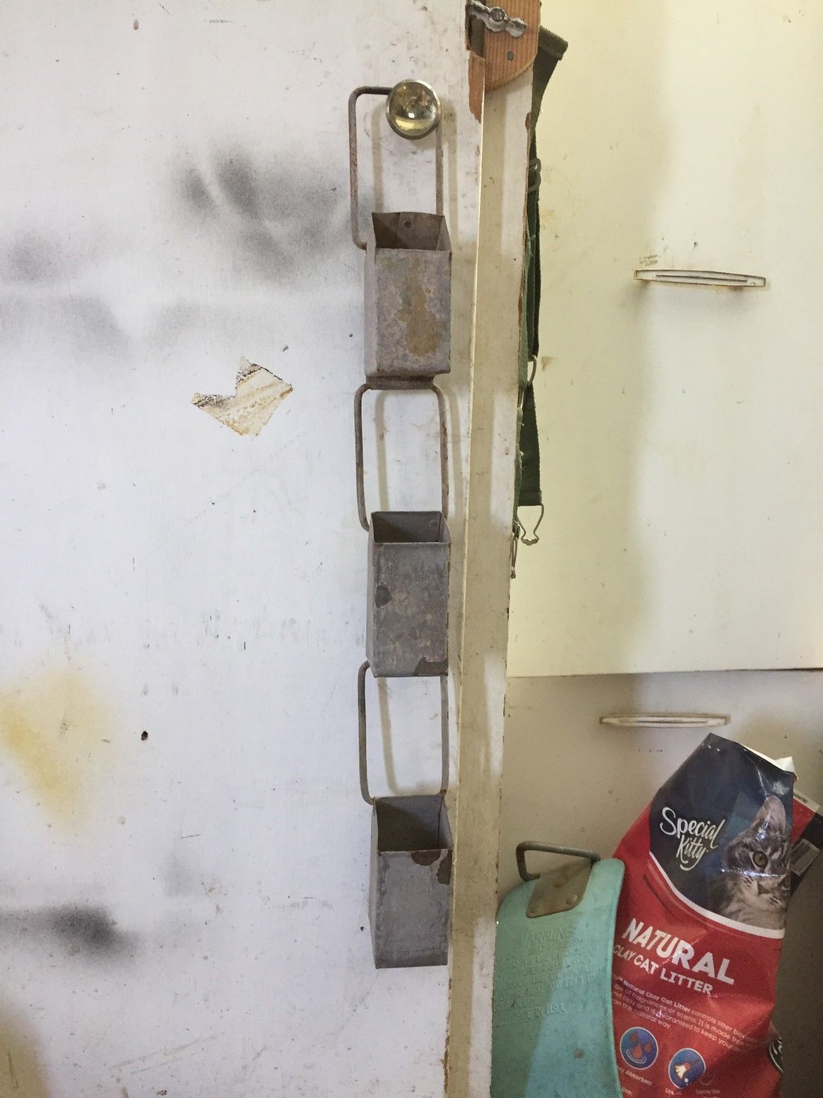 vintage antique galvanized cistern cups and chain 3 cups decor flowers spices