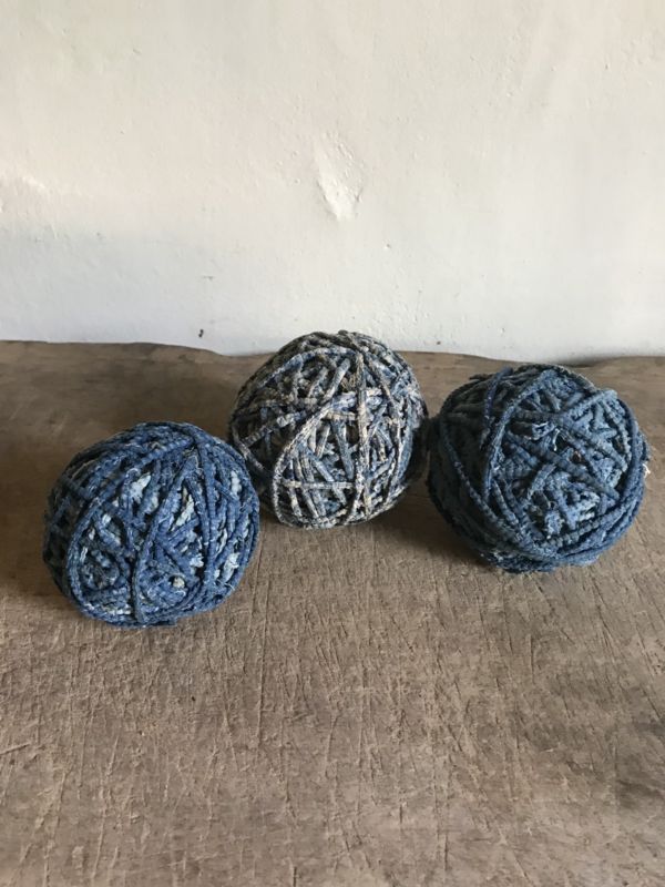 3 Large Indigo Blue Rag Rug Balls Handmade Textile AAFA LAST ONES