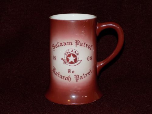 Title (ebay affiliate link): ANTIQUE RARE 1909 SHRINER MASONIC SALAAM Patrol ARAB Patrol RARE Ceramic Mug