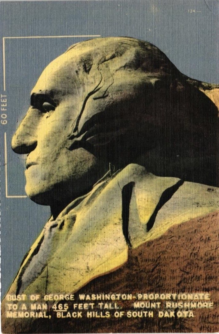 DR JIM STAMPS US GEORGE WASHINGTON MOUNT RUSHMORE CLOSE UP LINEN POSTCARD