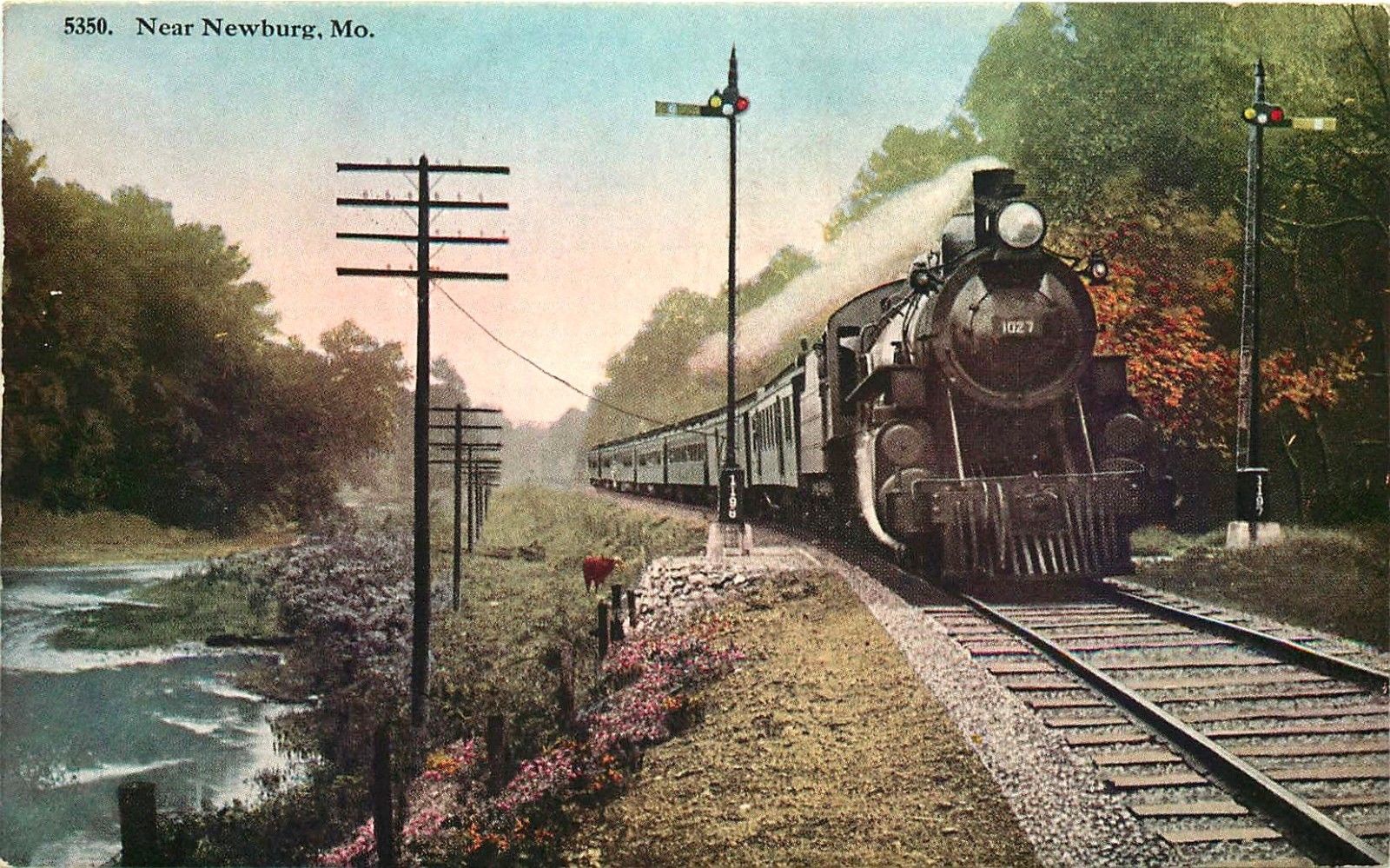 RAILROAD TRAIN NEAR NEWBURG, MISSOURI, FRED HARVEY, VINTAGE POSTCARD
