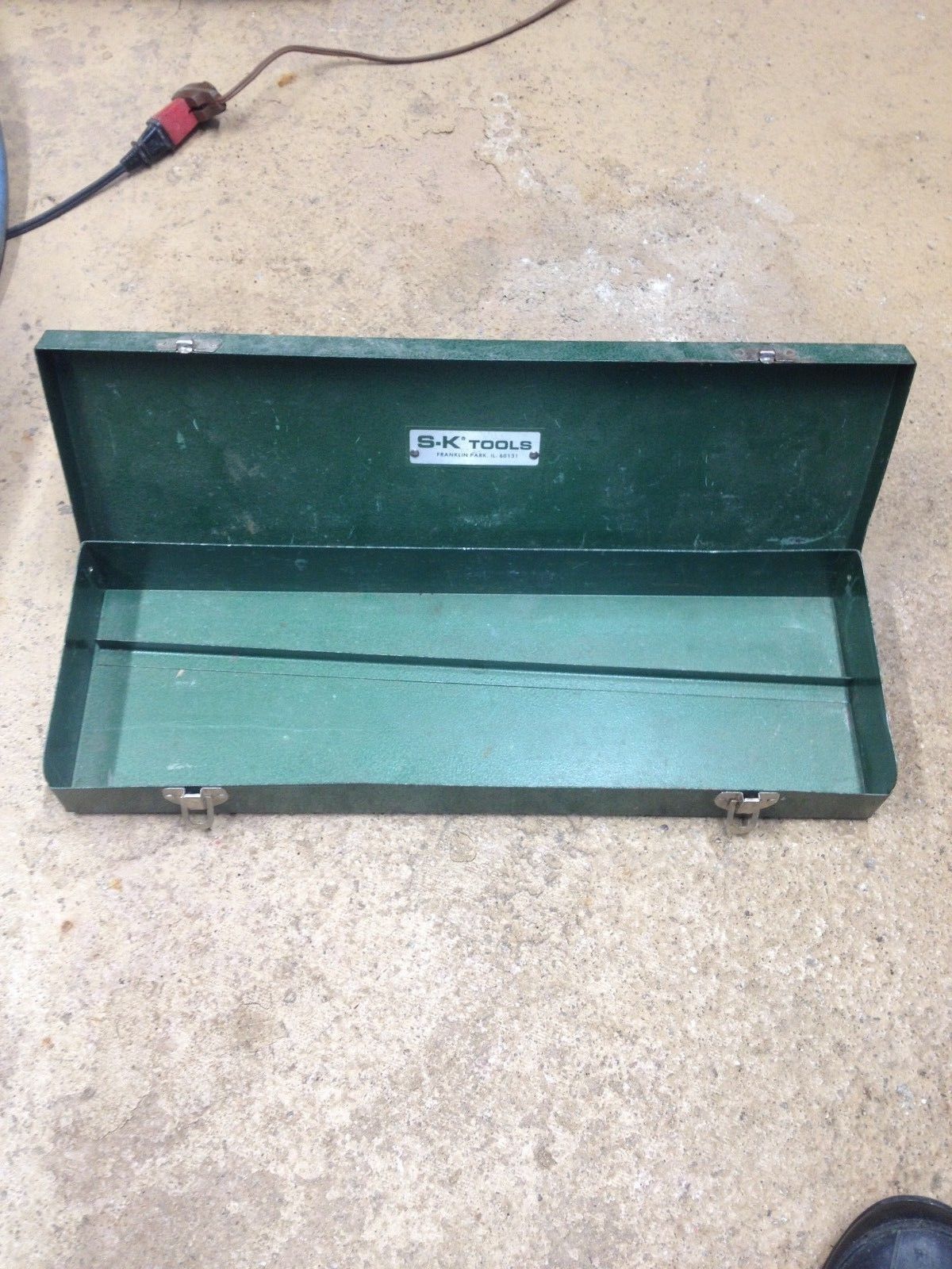 Title (ebay affiliate link): VINTAGE S K TOOLS GREEN METAL TOOL BOX FOR SOCKETS WITH LOGO 18" LONG