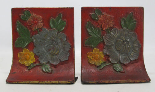 Title (ebay affiliate link): Antique Albany Foundry Cast Iron Polychrome Painted Flower Relief Bookends yqz