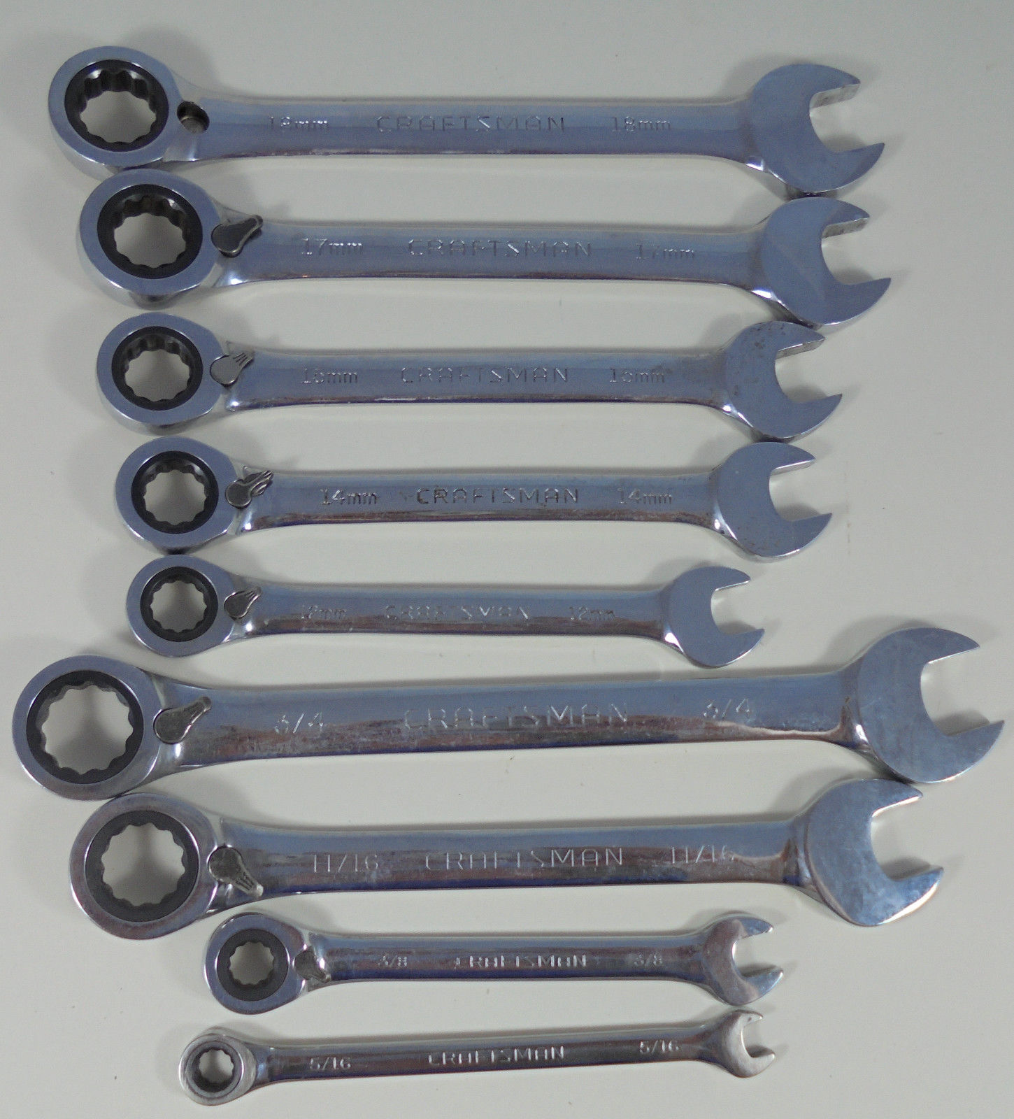 Title (ebay affiliate link): Lot of 9 Craftsman reversible ratcheting combination wrenches: SAE & metric