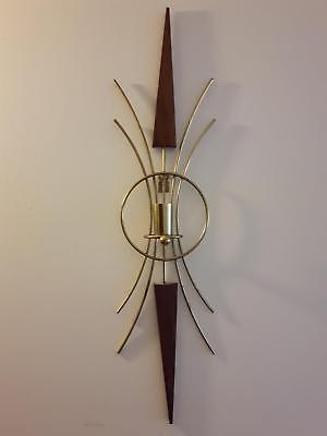 Vintage mid century modern teak candle sconce star burst sun burst brass accents
