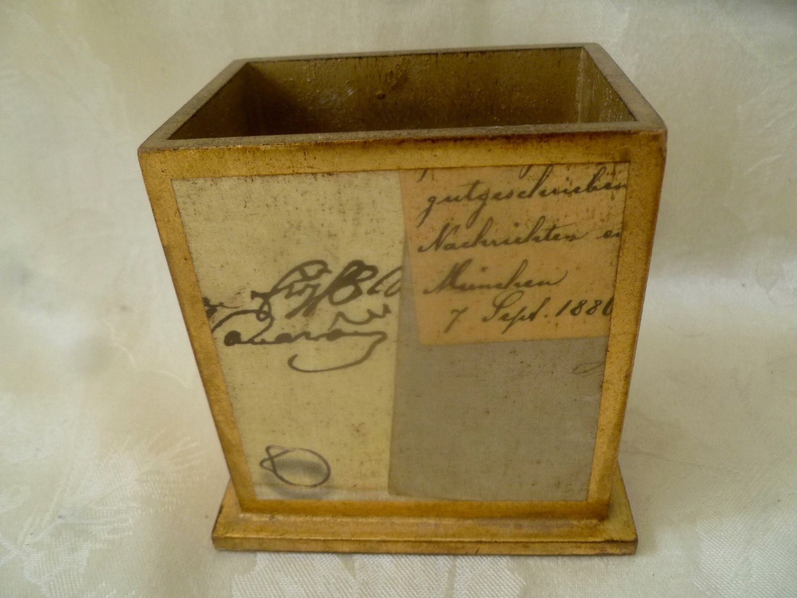 Title (ebay affiliate link): Vietri Gilded Wood Box Desk Pen Holder Accessory w/ decoupage Design