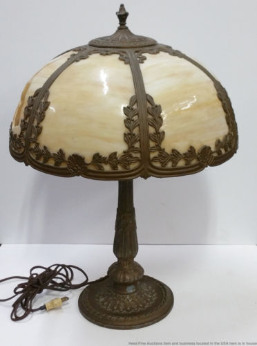 Title (ebay affiliate link): Heavy Antique Caramel Slag Glass Shade Double Lighted Table Lamp To Fix