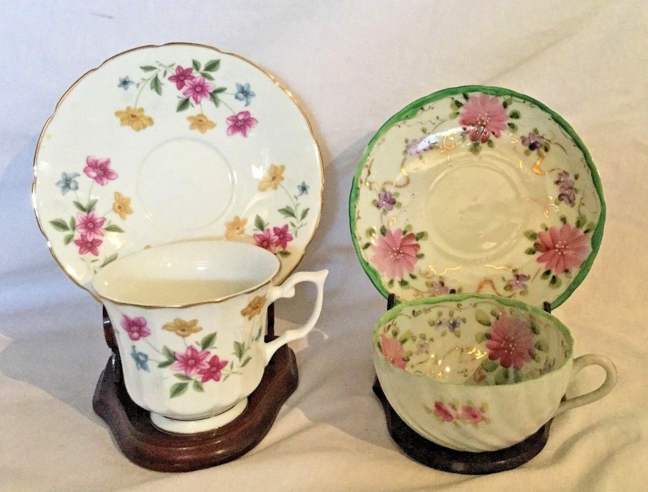 Lot of 2 Vintage Antique Teacup and Saucer Sets Flowers China