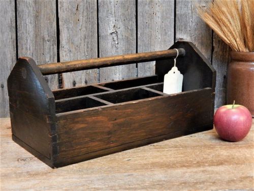 Title (ebay affiliate link): Antique Primitive Wooden Childs Tool Box Carrier Tote Dovetailed AAFA