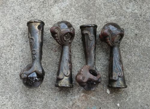 4 Antique Piano or Pump Organ Stool Parts, Glass Ball Claw Feet Decorative Cast