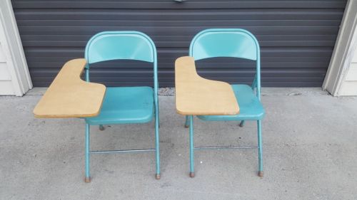 Title (ebay affiliate link): Lot of 2 Vintage Antique School Desk Folding Metal And Wood - Nice- Unique.