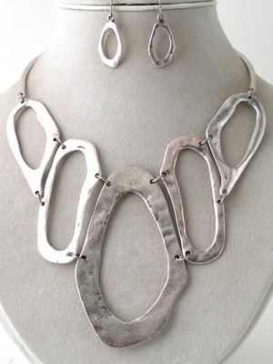 CHUNKY WESTERN ANTIQUE SILVER METAL ART NECKLACE SET