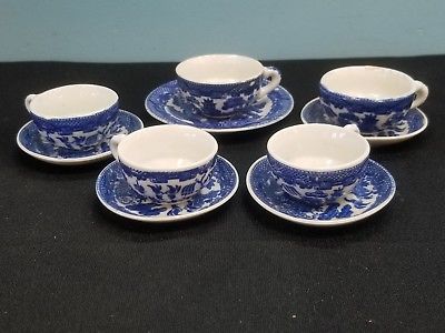 10 pc Blue Willow Transferware Childs China Tea Cup Party Saucer JAPAN 1940 1950