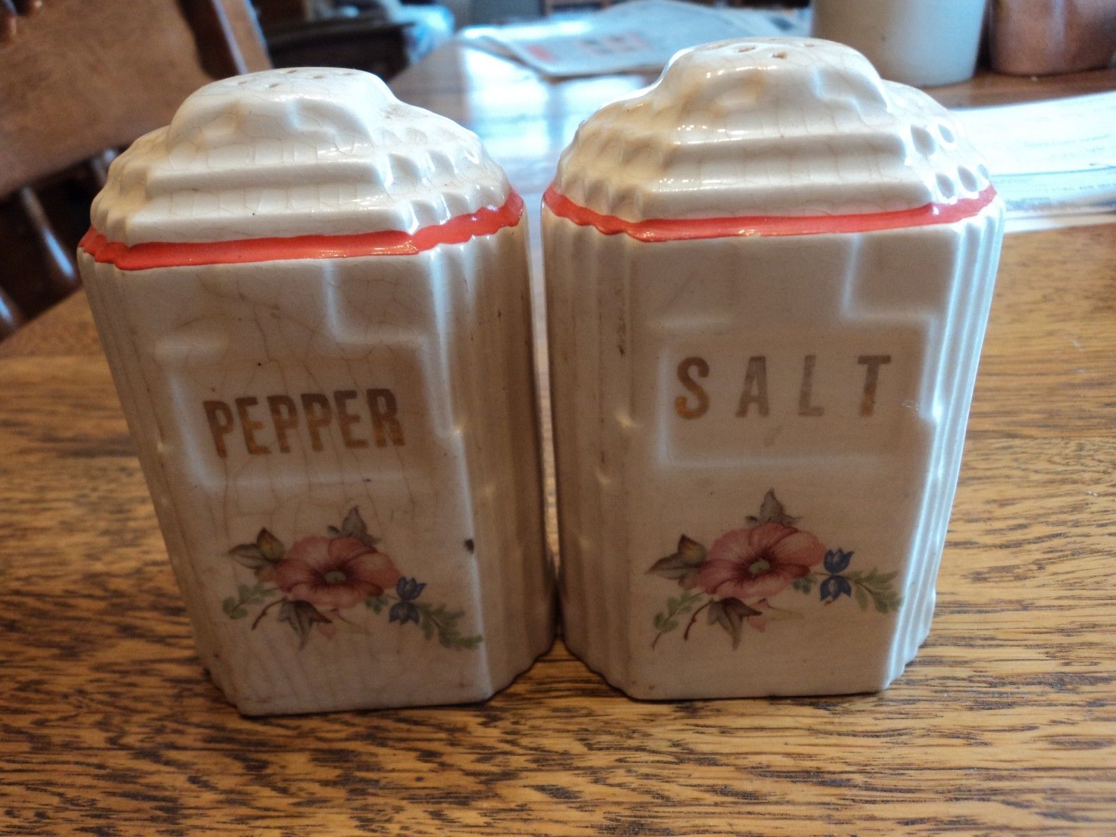 1930s cottage white VINTAGE old salt & pepper shakers FARMHOUSE ART DECO Camp
