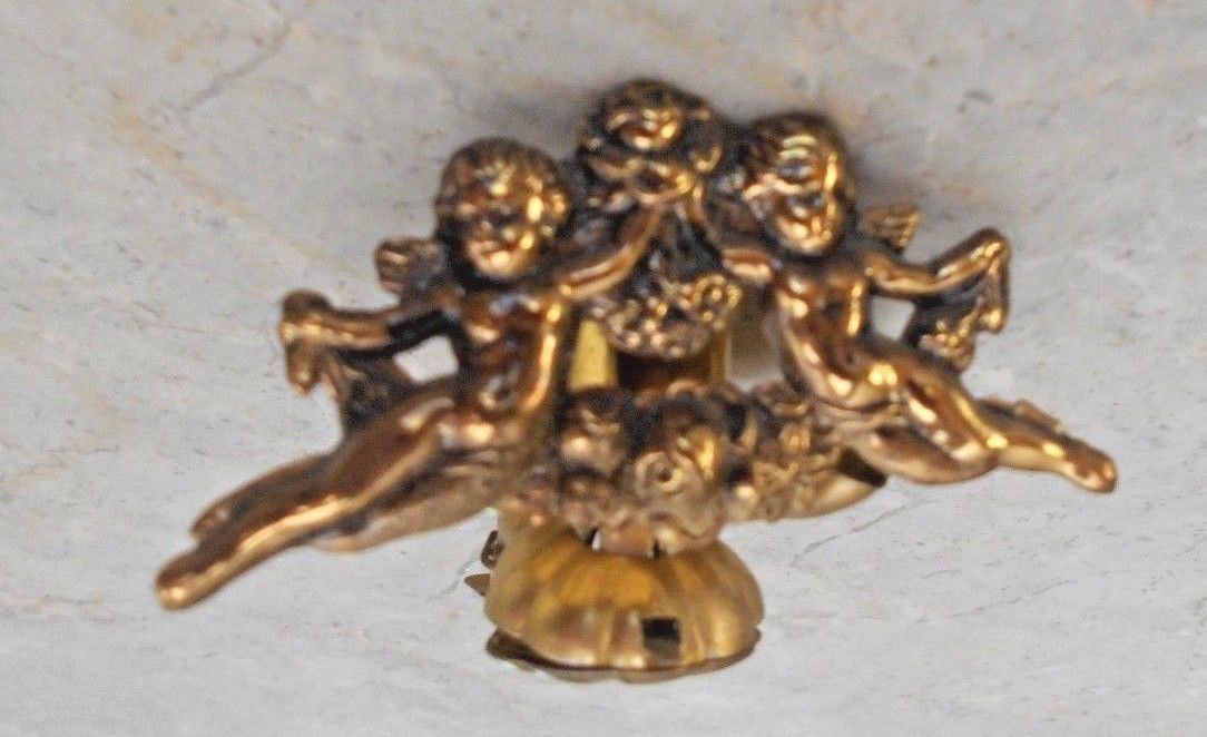 Vtg Tin Christmas Tree Candle Clip Cherubs Angels Roses Victorian Look