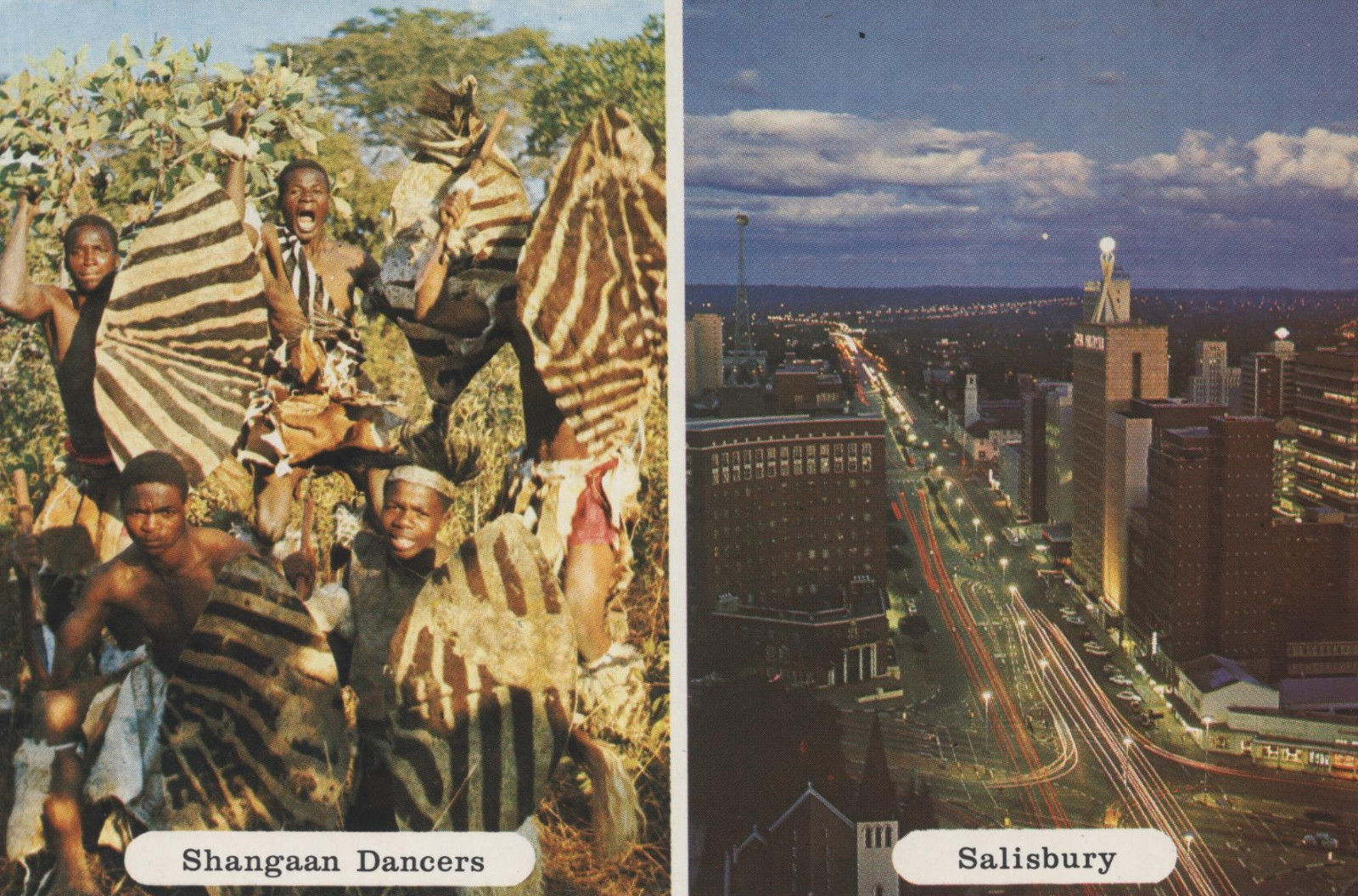 Rhodesia: Postcard of Shangaan Dancers and Salisbury, Rhodesia, unposted, 1970s