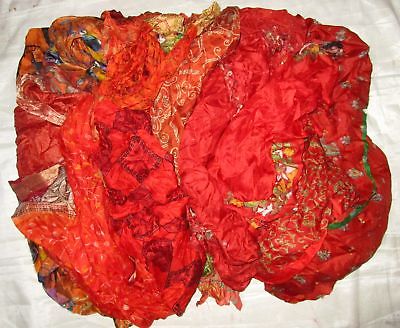 LOT PURE SILK Antique Vintage Sari REMNANT Fabrics 100 GRAMS Orange CRAFT DOLL