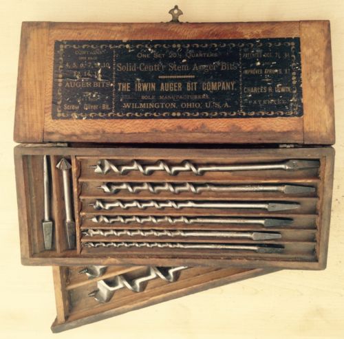 Title (ebay affiliate link): IRWIN AUGER BIT Co. One Boxed Set Solid Center Stem Auger Bits Pats. 1884 & 1887