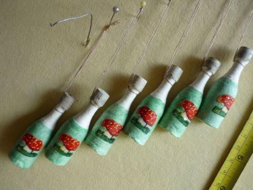 Title (ebay affiliate link): VTG.SIX COTTON BOTTLES CHRISTMAS TREE ORNAMENT WITH MUSHROOMS