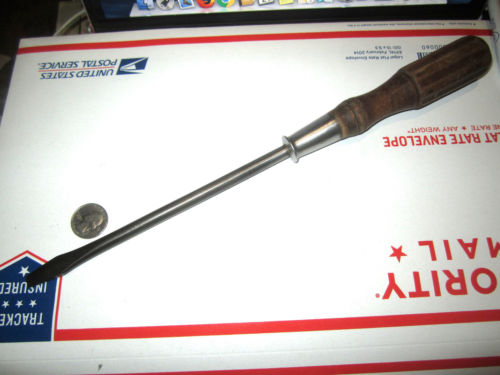 Title (ebay affiliate link): ANTIQUE/VINTAGE WOODEN & STEEL HANDLED SCREWDRIVER 13 1/2" GOOD USED COND.
