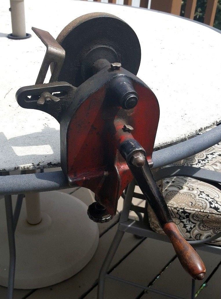Vintage Red Hand Crank Grinder Luther Mfg Milwaukee Wis. Table/Bench Mount