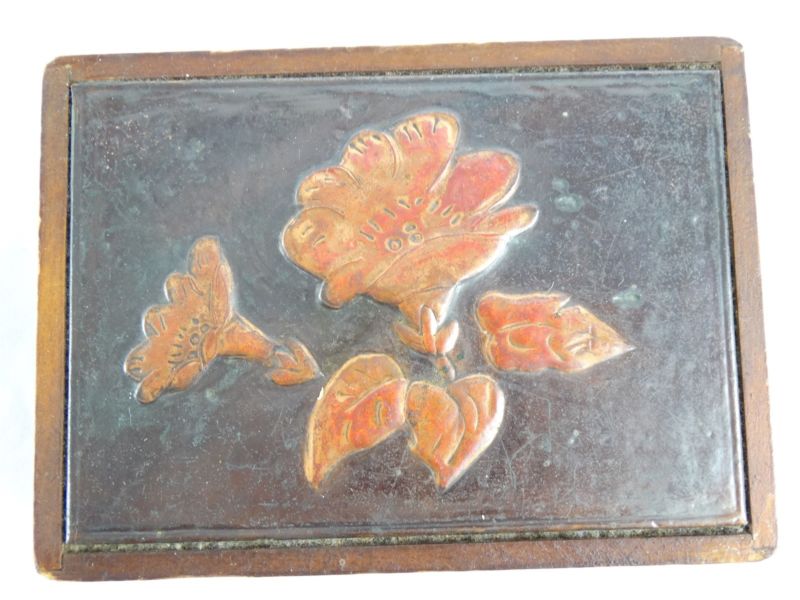 Vintage Mid century arts & crafts worked Copper & Teak wood Card Box c1950s