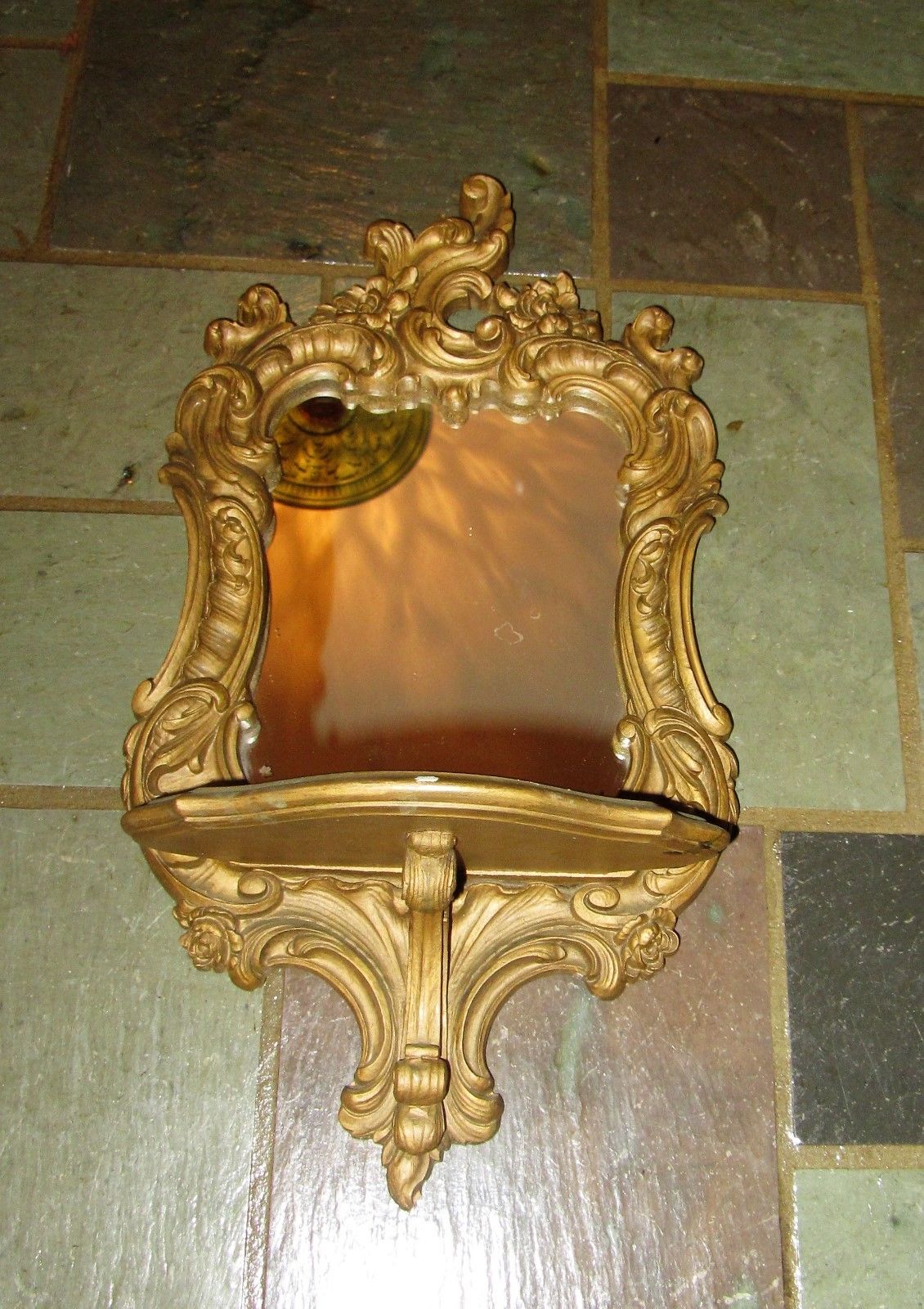 VINTAGE LARGE SYROCO WOOD MIRROR W SHELF; ORNATE FRENCH STYLE
