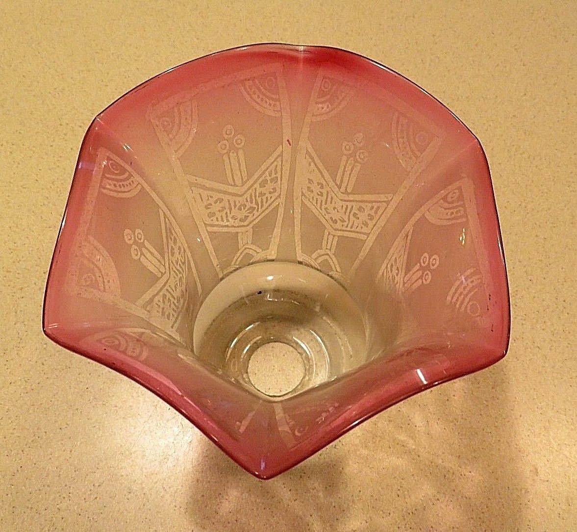 Title (ebay affiliate link): Vintage Violet and clear etched glass lamp shade tulip ruffle Deco Pattern