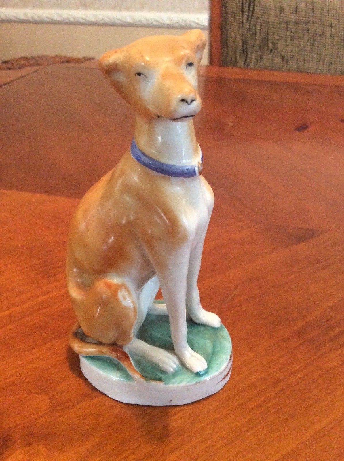 Staffordshire Ceramic Greyhound Whippet Dog Figurine Brown Antique