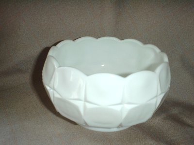 WHITE MILK GLASS BOWL/PLANTER BLOCK PATTERN
