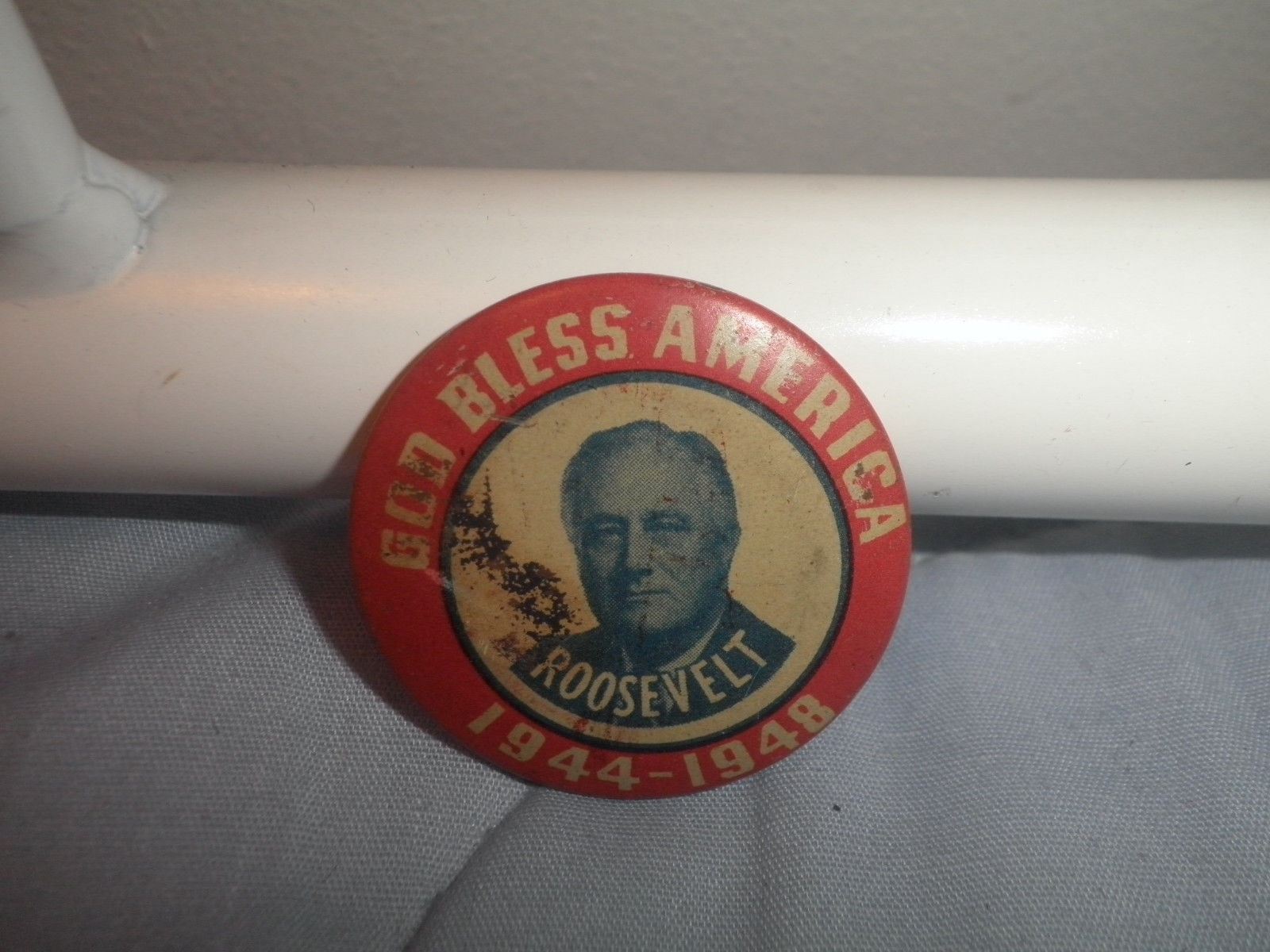 Title (ebay affiliate link): 1944 President Franklin Roosevelt Campaign Button-God Bless America 1944-1948