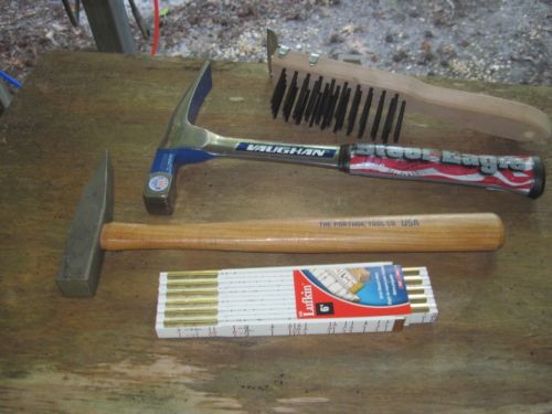Title (ebay affiliate link): 4 New Masonry Tools: 2 Hammers:Vaughan&PortageTool + Lufkin Rule + Wire Brush