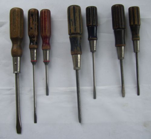 vintage Stanley wood handle screwdriver lot, North Bro''s, Yankee, Hurwood