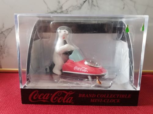 Title (ebay affiliate link): 1999 Coca-Cola Brand Collectible Mini-Clock Snowmobile polar bears NIB