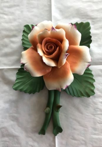Capodimonte Peach Rose Flower Porcelain Made In Italy