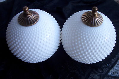 PAIR-FENTON-WHITE MILK GLASS HOBNAIL-GLOBES W/FINIALS