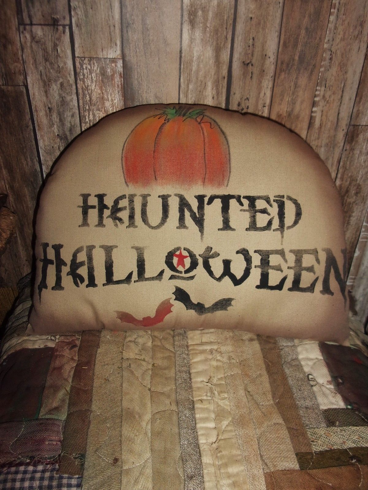 Title (ebay affiliate link): *Primitive 8x11in HALLOWEEN PILLOW Stuffed Fabric Country old rusty doll
