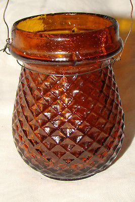 ANTIQUE AMBER GLASS CHRISTMAS FAIRY LIGHT LAMP CANDLE HOLDER