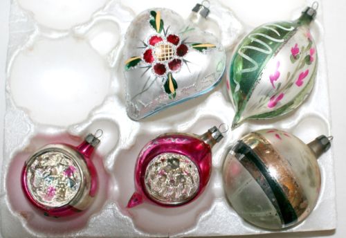 Title (ebay affiliate link): Five colorful Polish assorted Glass Ornaments. 1930s. Hand-painted, so bright